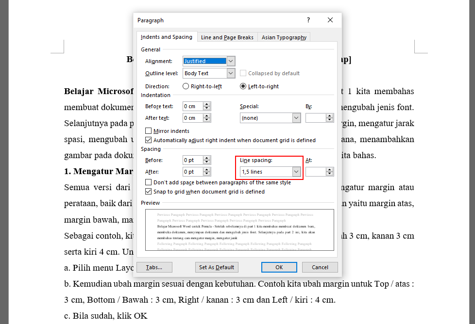 Kemudian pada Line Spacing, ubah sesuai dengan kebutuhan kalian